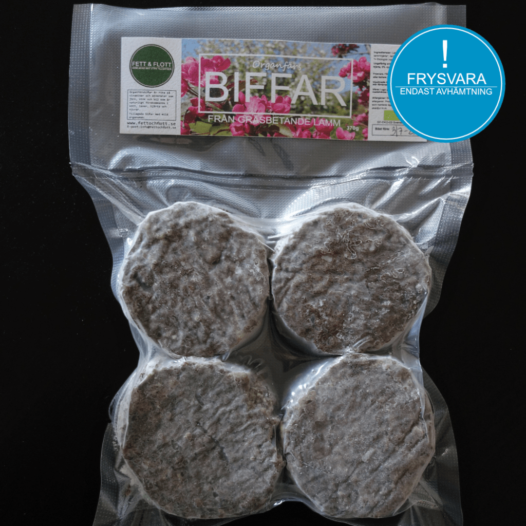 Ingredienser: Lammfärs*, lammlever*, lammhjärta*, lammnjure*, örter*, havssalt